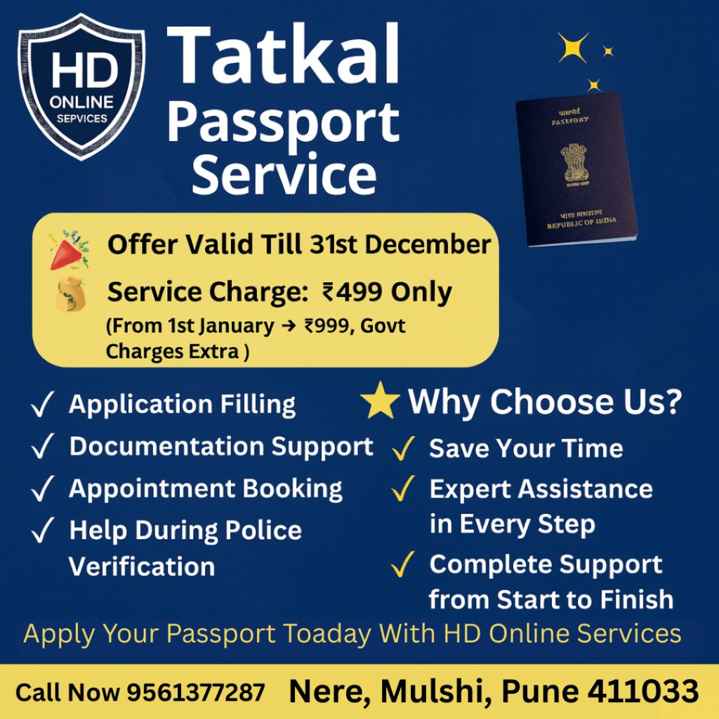 #TatkalPassport #PassportService #HDOnlineServices #Mulshi #PuneServices #PassportApply #OnlineServices #FastService #PassportHelp #DocumentationSupport